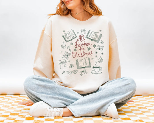 All Booked for Christmas Sweatshirt, Cozy Book Lover Christmas Crewneck, Reading Holiday Sweater, Line Art Book Tee, Gift for Readers