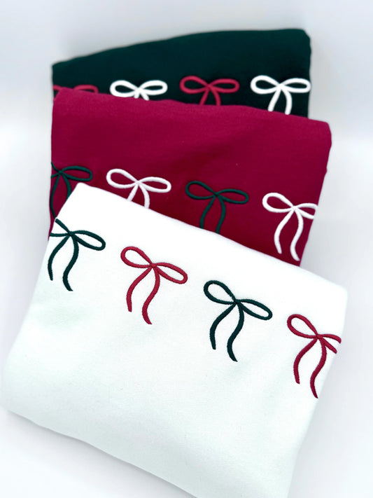 Embroidered Christmas Bow Sweatshirt • Holiday Crewneck for Women | Cute Festive Winter Sweater | Cozy Xmas Outfit | Gift for Her