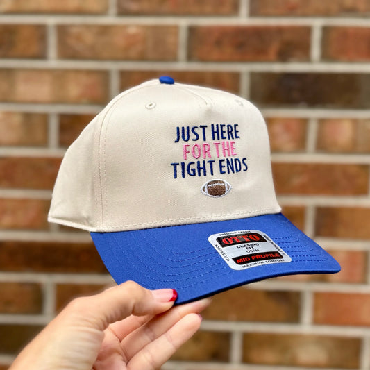 Just Here for the Tight Ends Hat | Football Trucker Hat | Two Tone Pink & Blue Embroidered Cap | Game Day Hat