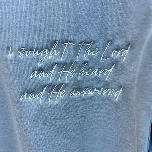 I Sought The Lord And He Heard And He Answered Monochromatic Embroidered Sweatshirt | Comfort Colors Christian Crewneck