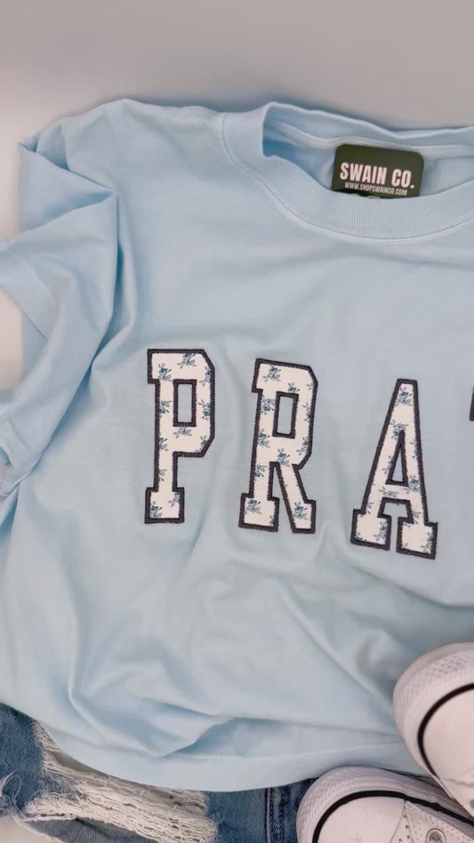Pray Appliqué Boxy Tee | Christian Graphic T-Shirt | Faith-Based Oversized Shirt | Trendy Religious Apparel for Women