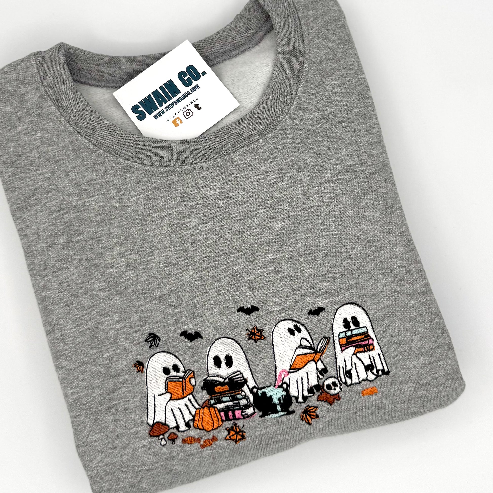 Book Ghost Embroidered Sweatshirt | Cozy Fall Reading & Halloween Crewneck