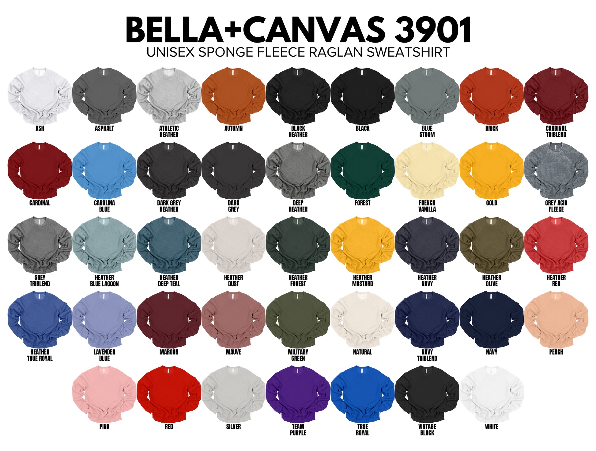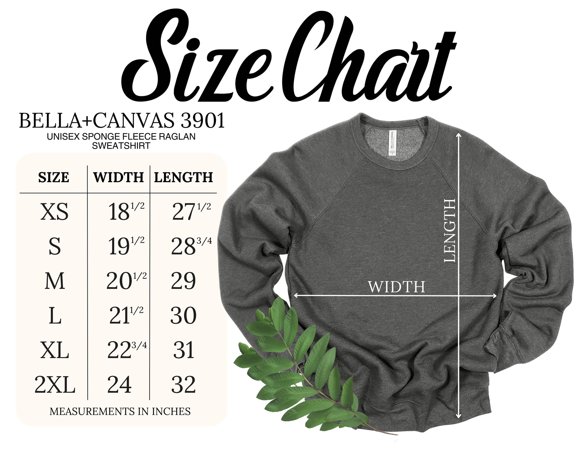 - Sweatshirt brand: Bella + Canvas (unisex sizing)