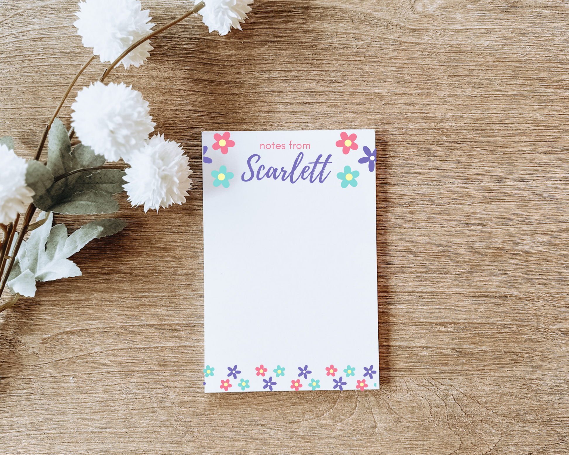 Floral Personalized Notepad | "Notes from [Name]" | Custom Stationery | Teacher Gift | Teen Gift | Boss Gift | Cute Desk Pad