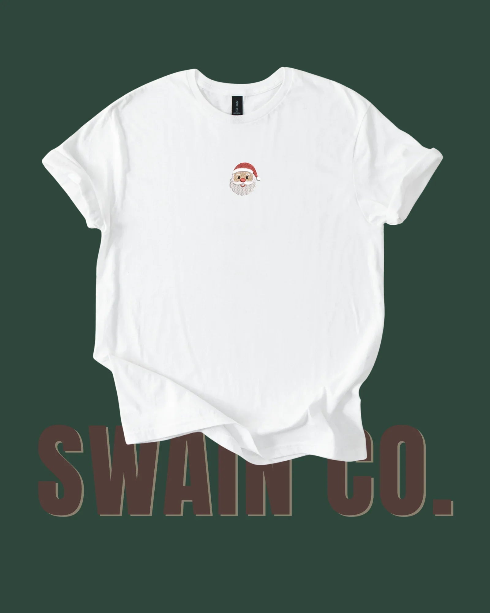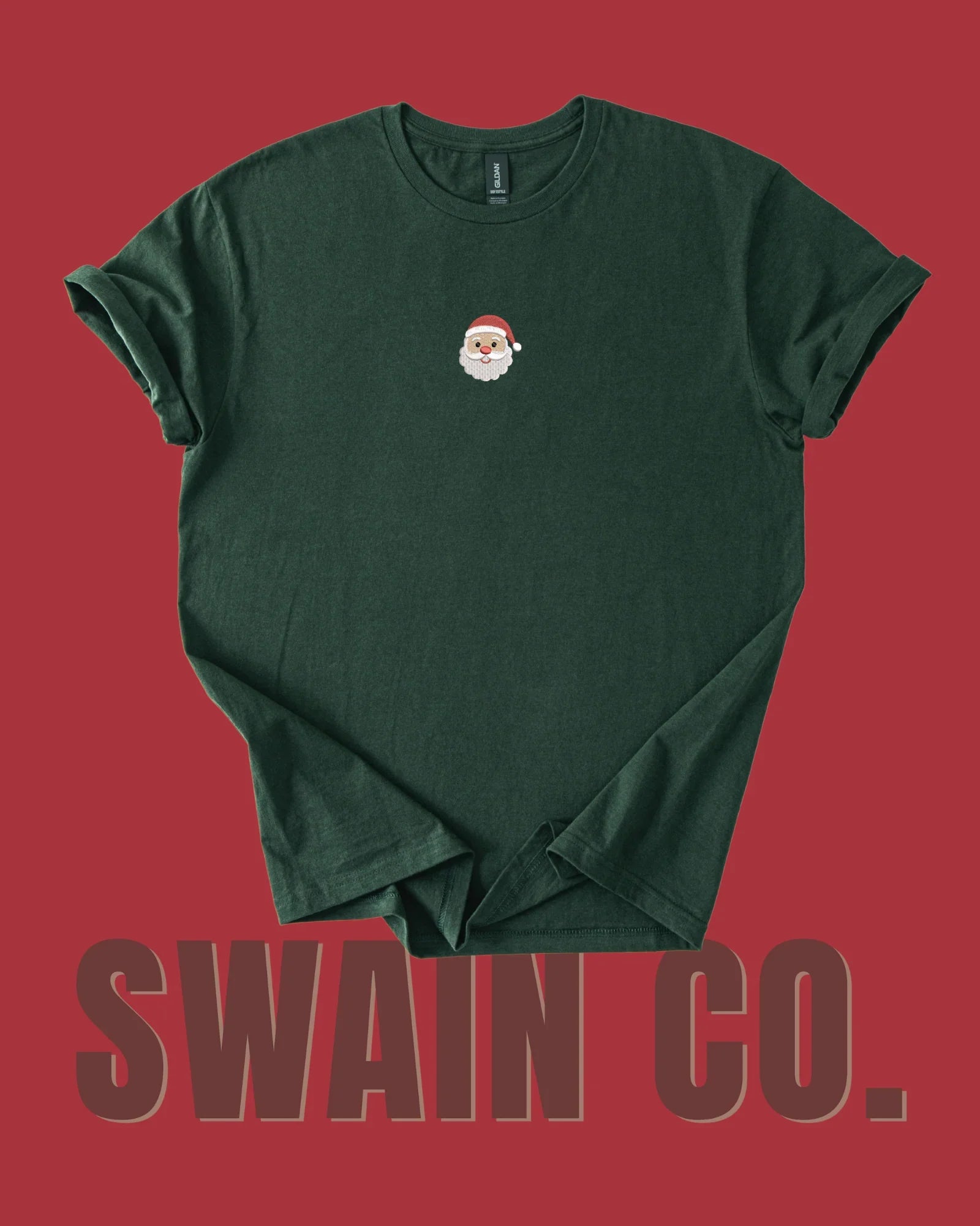 Mini Santa Embroidered Tee – Classic Embroidered Santa Shirt | Holiday Embroidery Tee for Kids, Teens & Adults | Perfect Match to Classic Santa Pajama Pants