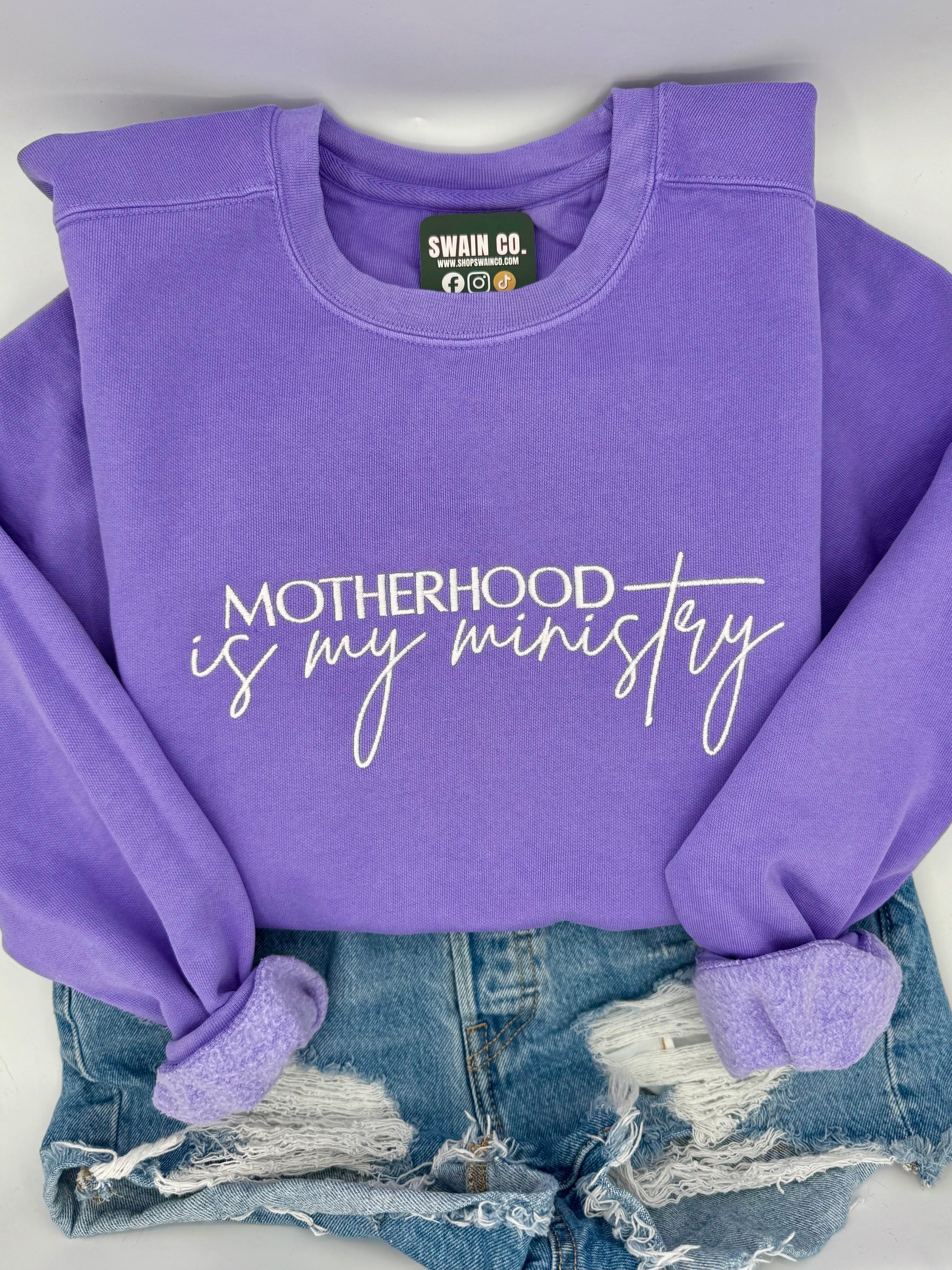 Motherhood Is My Ministry Embroidered Sweatshirt | Christian Mom Crewneck | Comfort Colors Pullover | Faith Based Mama Gift | Religious Mother’s Day Shirt
