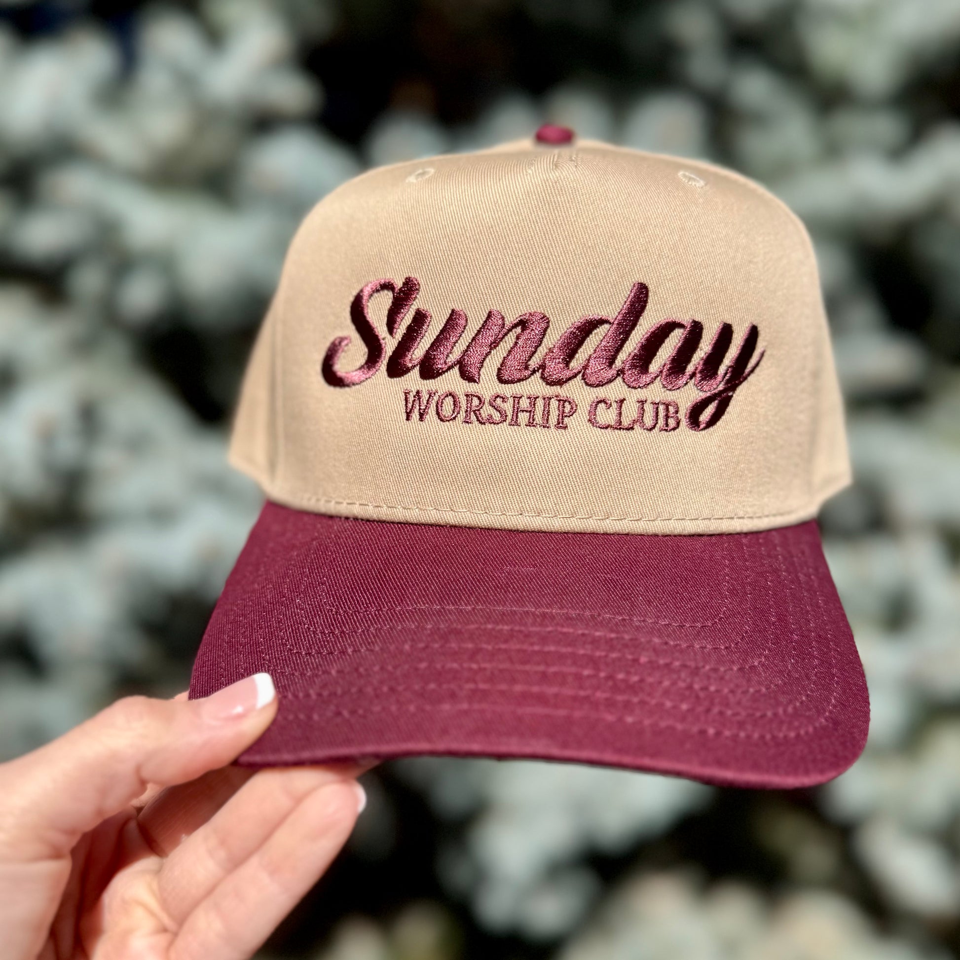 Sunday Worship Club Embroidered Trucker Hat | Christian Trucker Hat | Faith Based Hat