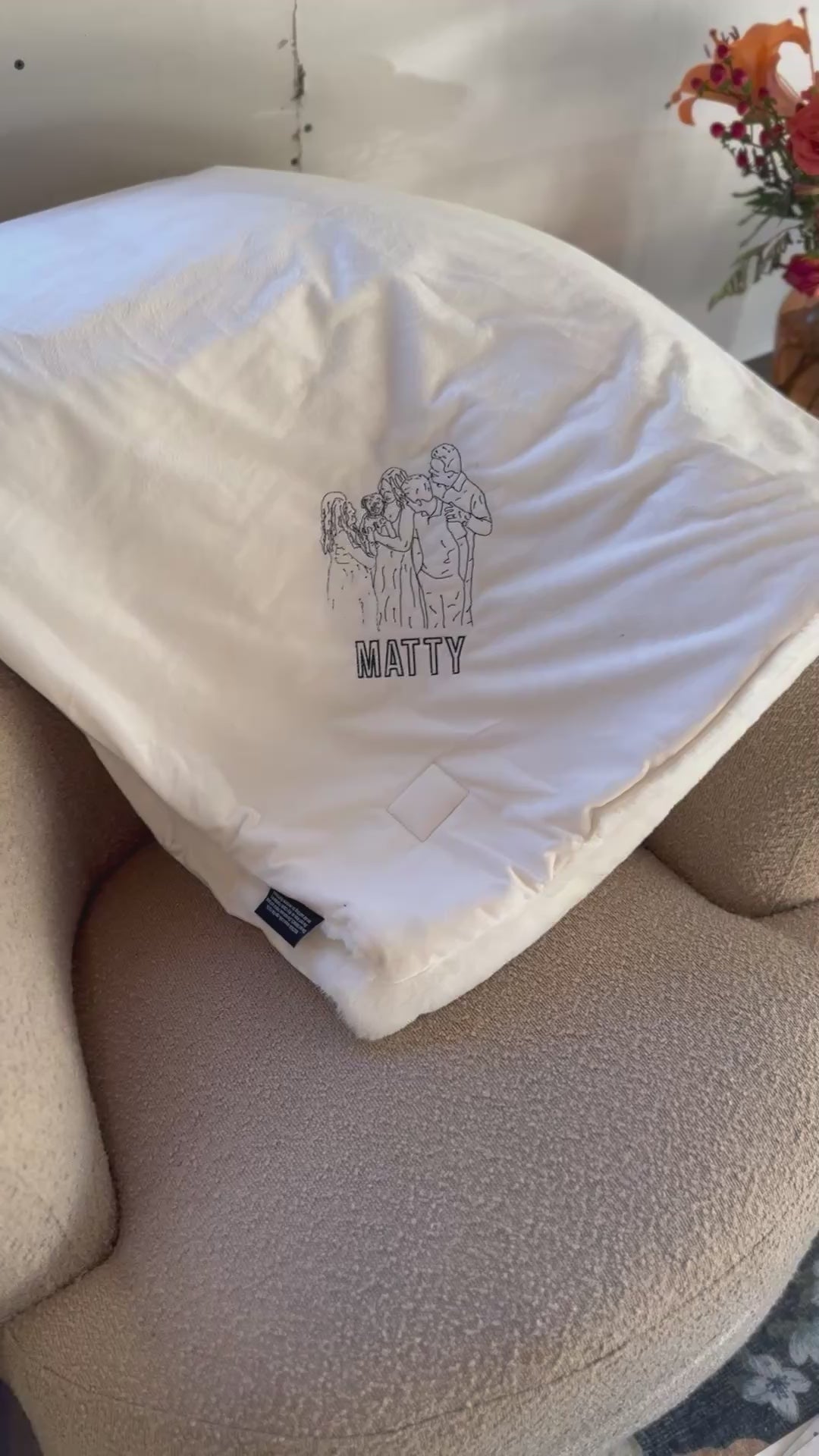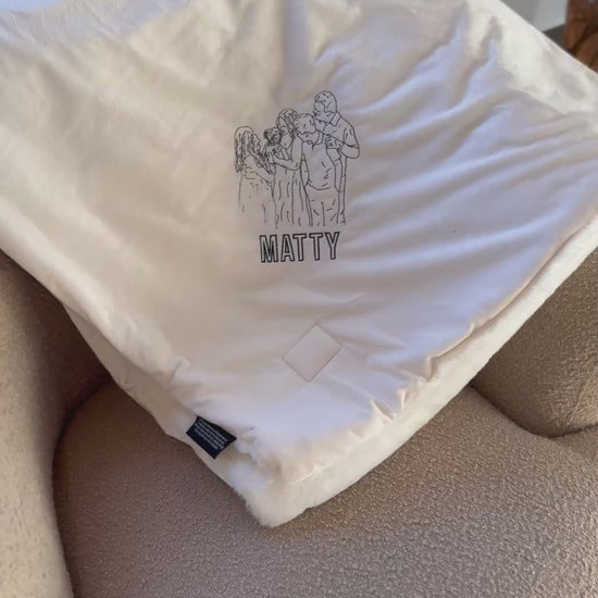 Wrap your memories in warmth. This luxuriously soft minky blanket is more than just cozy — it’s a heartfelt keepsake that beautifully captures your favorite photo, name, or message. Photo is hand drawn and digitized for embroidery. Each blanket is carefully embroidered with your custom design, creating a one-of-a-kind gift that will be treasured for years.
