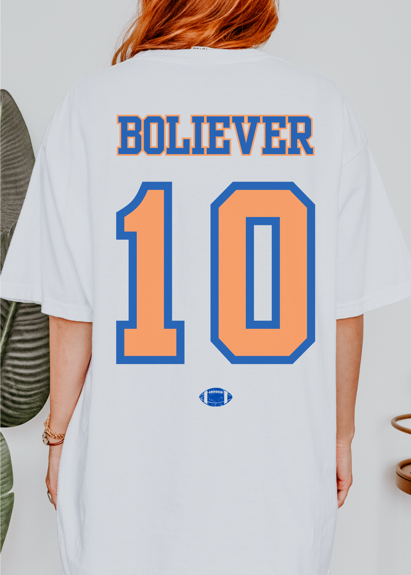 Score a touchdown with the Bo Nix Denver Football Tee or Crewneck Sweatshirt! Show off your love for the Denver Broncos and college football star Bo Nix with this quirky and playful design. From game day to everyday, this shirt or sweatshirt is the perfect way to rep your team in style. After all, Bo Knows.