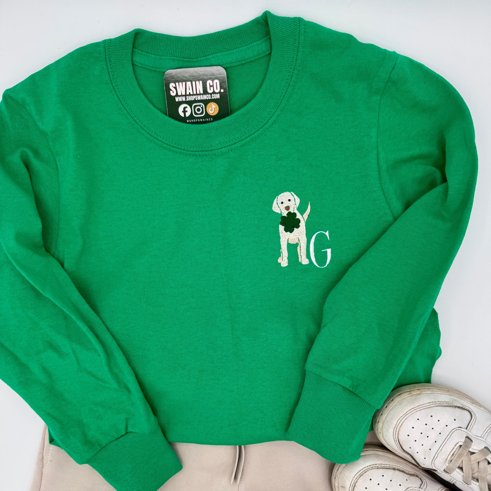 Lucky Pup St. Patrick’s Day Embroidered Long Sleeve Shirt – Personalized Toddler & Boys Shirt